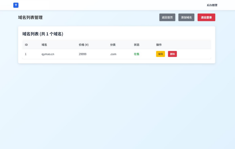域名出售系统 带简易后台管理的米表系统 自适应页面 网站首页自适应设计桌面端 平板端 移动端